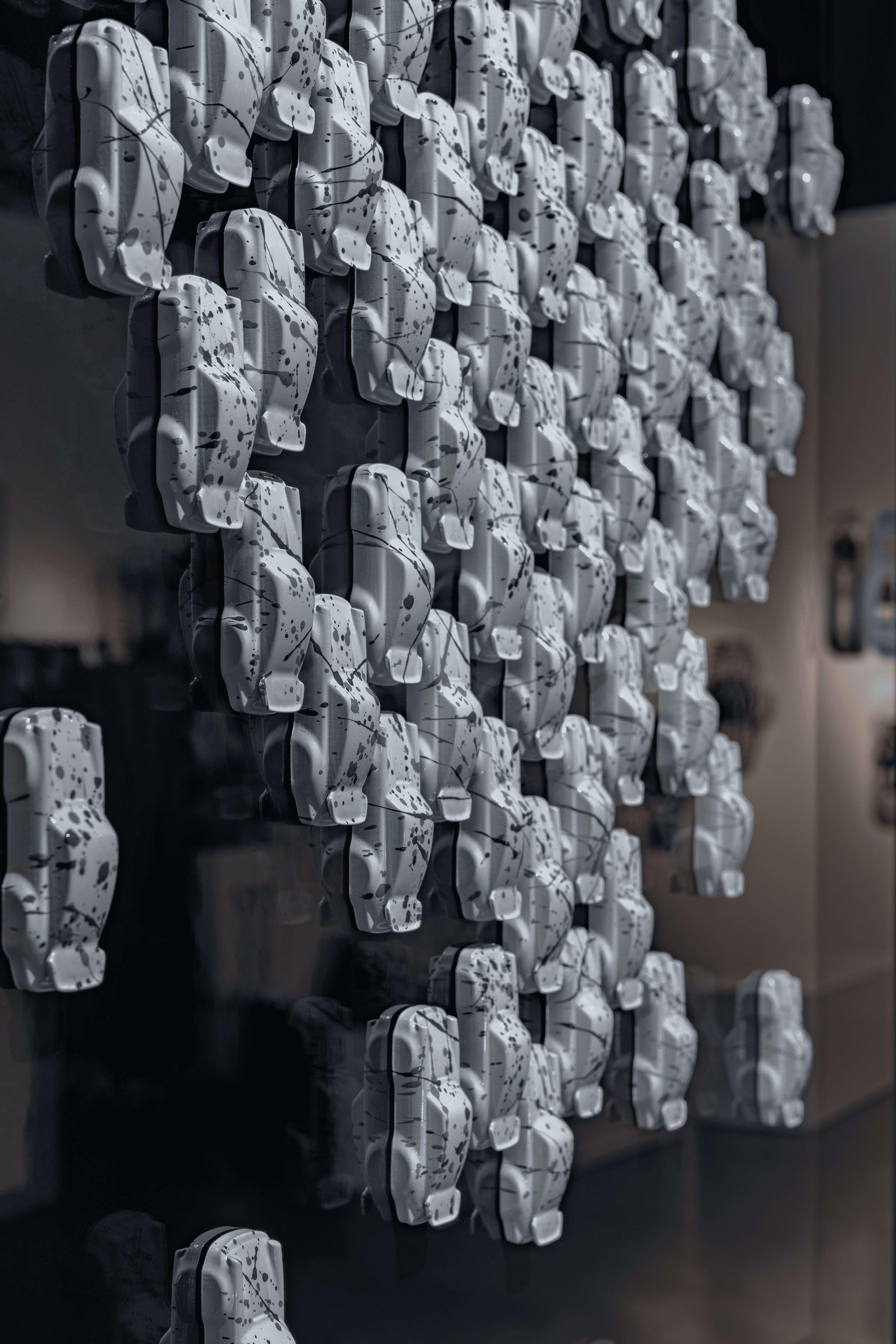 Each car is 3D printed in high-performance resin, requiring up to 400 hours of printing for a single artwork.